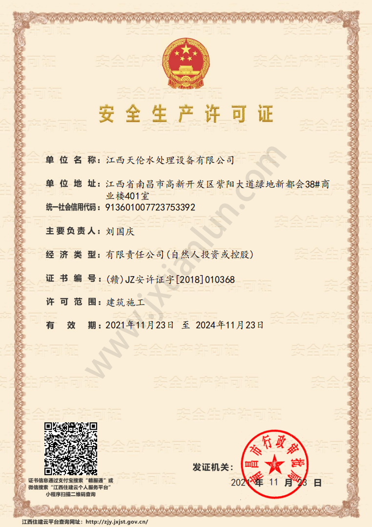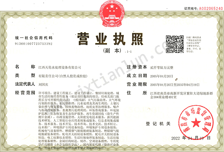 2005年:天倫進入高新開發(fā)區(qū)留學生創(chuàng)業(yè)園,進入快速發(fā)展階段,成立江西天倫水處理設(shè)備有限公司